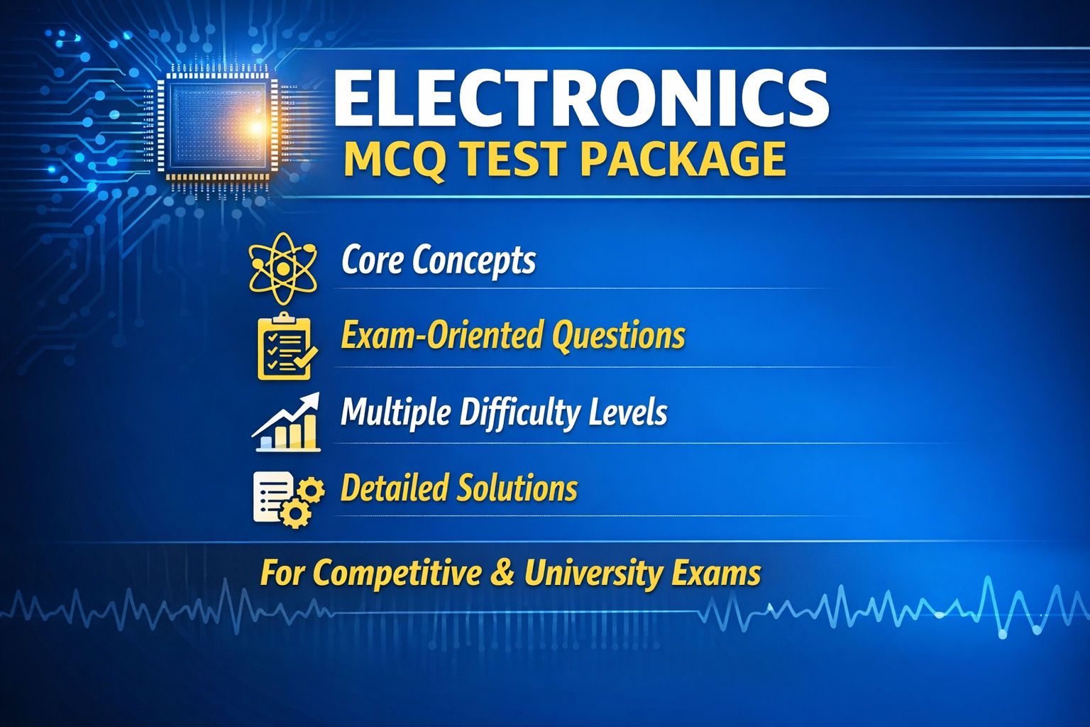 MCQ test package in Electronics covering core concepts, exam-oriented questions, multiple difficulty levels, and detailed solutions for competitive and university exams.